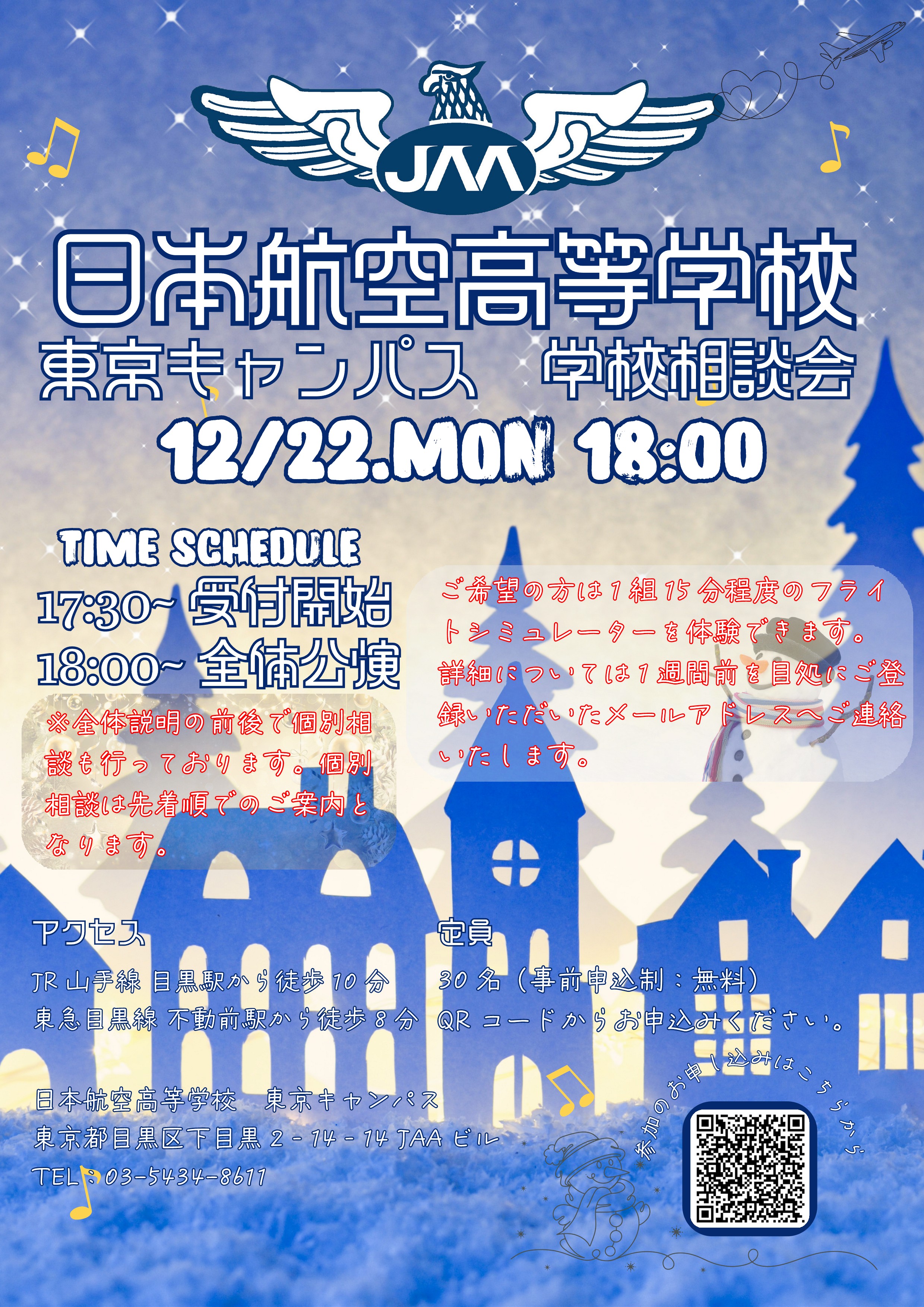 東京 学校説明会 入学説明会 オープンキャンパス 個別相談 12/22(月)東京キャンパス 学校相談会
