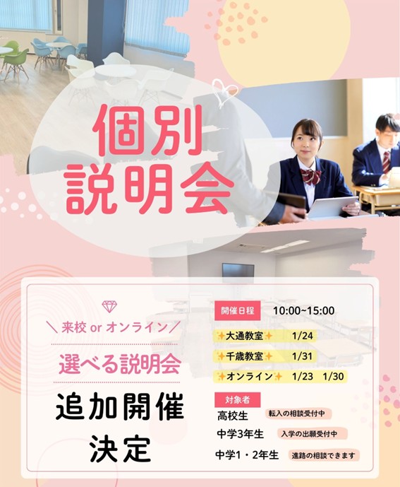 北海道 学校見学 学校説明会 入学説明会 オンライン相談 オープンキャンパス 個別相談 追加開催 1月も個別説明会実施